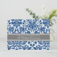 Convite de festa de aniversário de 15 anos de casamento em azul-marinho escuro elegante, cinza e branco clássico e sofisticado padrão de damasco floral vintage, delicado e contemporâneo. Personalizável com os detalhes da sua festa.