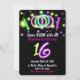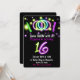 Convite de Aniversário de 16 Anos da Festa GLOW Lights Idade 16. Personalize o texto na frente e no verso.