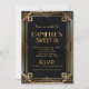 Convite de Aniversário de 16 anos preto e dourado no estilo art déco dos anos 20. Confira nossos cartões de resposta e recepção combinando.