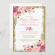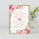 Cartão de Convite de Aniversário de Sweet Sixteen com Floral de Aquarela Rosa e Brilho Dourado - Letra Rosa