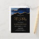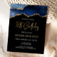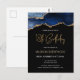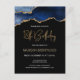 Este convite de aniversário de 18 anos em estilo postcard apresenta uma imagem em aquarela de uma geoda de ágata em tons de azul com destaques em dourado falso. As palavras "Aniversário de 18 anos" aparecem em brilho dourado falso em uma fonte manuscrita moderna decorativa. Personalize-o com o nome do convidado de honra em texto colorido dourado e os detalhes em branco sobre um fundo preto.