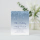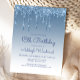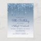 Este convite de aniversário de 18 anos apresenta uma borda de gotejamento de brilho falso azul brilhante e um fundo ombre. As palavras "Aniversário de 18 Anos" e o nome do convidado de honra aparecem em letra cursiva azul casual, com o restante do texto personalizável em fonte sans serif azul.
