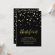 Celebre seu dia especial com este convite de aniversário de 19 anos minimalista simples. Este design apresenta um script de letra elegante "Dezenove" com confetes em forma de hexágono com uma combinação de cores preta e dourada. Mais designs disponíveis na minha loja BaraBomDesign.
