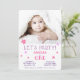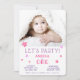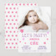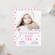 Convite de Aniversário de 1 Ano para menina ou menino. Cartão de aniversário de primeiro ano com foto fofa. O cartão tem estrelas cor-de-rosa na frente e no verso. O design tem uma foto - insira sua foto no modelo e personalize o cartão com seus detalhes. Convide sua família e amigos para a festa de primeiro aniversário da sua menina ou menino.