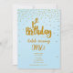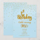 Convite de Aniversário de 1 ano Azul Claro e Dourado com Confetes. Você pode organizá-lo da maneira que quiser.