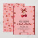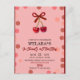 Convite de Aniversário de 1 Ano Editable Cherry, Modelo de Convite de Aniversário | Desenhado à Mão, Ela é Nossa Pequena, Cereja no Topo , Dia de Aniversário da Menina , Convite para Festa,