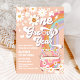 Celebre o marco do seu pequeno com este convite de primeiro aniversário retrô inspirado, apresentando listras de arco-íris pastel, sinais de paz, margaridas, borboletas e uma van caprichosa com poder de flor. Perfeito para uma festa temática hippie ou dos anos 60, este design colorido define o tom para paz, amor e diversão. Personalize com o nome da criança, detalhes da festa e informações de RSVP para criar um souvenir único. Ideal para aniversários de meninas, celebrações boho e temas de festa groovy, este convite vai deliciar os convidados e tornar seu evento inesquecível.