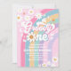 Celebre o marco do seu pequeno com este vibrante convite de 1º aniversário retrô! Com listras de arco-íris, margaridas, sinais de paz, corações e borboletas, este design descolado define o tom perfeito para uma festa divertida e colorida. A tipografia lúdica e o tema alegre tornam-no ideal para uma celebração boho, hippie ou inspirada nos anos 70. Personalize com os detalhes do seu evento e espalhe paz, amor e alegria para familiares e amigos. Um convite único e atraente que tornará o primeiro aniversário do seu filho inesquecível.