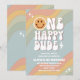 Celebre o marco do seu pequeno com este convite de aniversário de 1 ano retro pastel, apresentando listras onduladas divertidas, tipografia em negrito e detalhes caprichosos como ícones sorridentes e faíscas. Perfeito para um tema de festa divertido e nostálgico, este cartão personalizável define o tom para paz, amor e alegria. Projetado para impressionar os convidados e otimizado para visibilidade nos resultados de busca, é ideal para pais que planejam uma celebração elegante e memorável.
