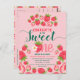 Cartão de Convite de Aniversário de 1 Ano Sweet One Pink Strawberry.