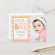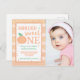 Este convite é doce como um pêssego! Características de listras de aquarela em tons de pêssego com a frase "Annleigh é uma doce". Perfeito para uma festa de primeiro aniversário de verão com tema de pêssego. Para personalizar ainda mais, adicione a foto do seu filho.