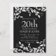 Comece sua festa de aniversário de casamento com o pé direito com nosso convite de aniversário de 20 anos de casamento com um impressionante acento floral de pérola branca em um fundo preto. Convite perfeito para qualquer aniversário, aniversário de 30 anos de casamento, aniversário de 40 anos, aniversário de 50 anos, aniversário de 10 anos, aniversário de 5 anos, aniversário de 60 anos ou aniversário de 75 anos.