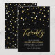Celebre seu dia especial com este convite de aniversário de 20 anos minimalista. Este design apresenta um script de letra elegante "Vinte" com confetes em forma de hexágono com uma combinação de cores preta e dourada. Mais designs disponíveis na minha loja BaraBomDesign.