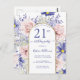 Este convite de aniversário de 21 anos em cartão-postal com flores elegantes apresenta flores rosa e roxas acentuadas com uma borda de brilho dourado falso para personalizar os detalhes da sua festa em letra moderna. O verso do cartão-postal tem uma mensagem que você pode personalizar. Desenhado por Susan Coffey.