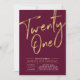 Convite de Aniversário de 21 anos em Burgundy & Do