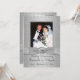 Este convite de casamento de 25 anos em damasco cinza prateado elegante com tom sobre tom tem uma fita prateada IMPRESSA e uma medalha prateada com aparência de gravada FALSA IMPRESSA. Possui uma área de modelo para você carregar sua própria foto digital. Todo o texto é personalizável, assim como as opções de papel. ****POR FAVOR, NOTE que o papel prateado é um cinza prateado muito escuro e alterará as cores do design (deixará a foto MUITO escura, etc.), então NÃO sugiro usar esse papel. O papel feltro também alterará ligeiramente a cor da sua foto, pois é de cor creme escura. ALÉM DISSO, se você alterar as fontes ou tamanhos de fonte, seu texto pode não caber mais corretamente. O Zazzle não editará nada para erros de digitação, desalinhamento ou qualquer outra coisa, e eu não verei seu convite. Tudo será impresso conforme aparece no seu monitor. Se precisar de ajuda com o convite, por favor entre em contato comigo ANTES de fazer o pedido. Este convite foi projetado para se ajustar ao cartão de tamanho 5x7. Se você mudar para outro tamanho, o design não se ajustará mais corretamente, então se você quiser um tamanho diferente, por favor entre