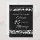 Cartão de convite de festa de aniversário de casamento de 25 anos em padrão floral preto e branco elegante, delicado e formal. Personalizável com os detalhes da sua festa.