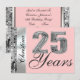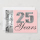 Adicionado a este convite lindo há um modelo para adicionar facilmente qualquer nome ou nomes na frente do cartão. Aqui está um convite elegante, formal e sofisticado com um gráfico "25" prateado em 3D com o texto "Years" em letra cursiva formal na frente. Personalize facilmente o belo texto cursivo correspondente no verso com nome, data e outras informações. Ótimos convites de Save The Date para a festa dos 25 anos ou talvez para uma futura bodas de prata para aquele casal especial. Uma bela moldura prateada na frente e no verso do convite com fundo rosa claro, ou facilmente altere para uma cor diferente, adiciona a este convite sofisticado. Adicionados a este design estão bordas deslumbrantes com lantejoulas prateadas (impressas) em ambos os lados deste convite sofisticado. Aparência rica e elegante, mas acessível.