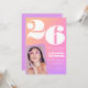 Convites de aniversário de 26 anos rosa para ela gradiente de foto retrô