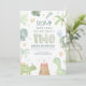 Convite de dinossauro com dinossauros bebês aquarela para o segundo aniversário do seu pequeno!