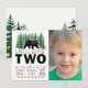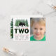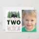 Convites de aniversário de dois anos para meninos com árvores de abeto verdes e urso com foto. Este adorável convite de aniversário de 2 anos do urso da floresta é facilmente personalizado para o seu evento, bastando adicionar seus detalhes e foto.
