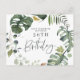 Convite de aniversário de 30 anos com folhagem botânica em aquarela. Lindas aquarelas florais impressas à mão e texto em letra cursiva moderna. Parte de uma coleção de festa.