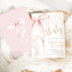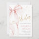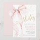 Convite de aniversário de 30 anos com Laço Rosa. Design feminino moderno em rosa bege e dourado. Apresenta um laço coquete de aquarela trendy e fonte de letra "trinta" em coração. Perfeito para uma celebração de aniversário feminina de estilo elegante. Personalize com seus próprios detalhes. Convites Zazzle impressos ou modelo digital para impressão instantânea.
