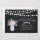 Um convite de aniversário de casamento rústico e elegante com jarra de mason e buquê de flores com um fundo de quadro negro.