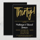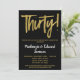 Um convite de aniversário de casamento de 30 anos preto e dourado, elegante, simples mas impressionante. Texto de script glamoroso no topo e texto dourado abaixo com o nome em branco destacado