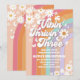 Celebre o grande dia do seu pequeno com este convite de 3º aniversário inspirado no estilo retrô! Com um vibrante fundo de arco-íris, margaridas divertidas, sinais de paz, borboletas e fontes caprichosas, este design captura o espírito divertido da década de 1970. Perfeito para uma festa de aniversário descolada, este convite personalizável define o tom para paz, amor e celebração. Personalize com o nome da criança, detalhes da festa e informações de RSVP para criar um mimo único que os convidados adorarão.