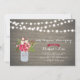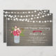 Celebre o vosso dia especial com este convite de aniversário de casamento com estilo. Este desenho apresenta um belo buquê de flores vermelhas com um jarro e luzes numa base de madeira rústica.