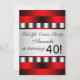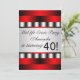 Convite de aniversário de 40 anos personalizado para mulher com tema vermelho e preto. Personalize a frente e personalize o verso com sua escolha de estilo de fonte e cor da fonte, e cor de fundo do verso.