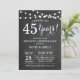 Convite de Aniversário de 45 Anos de Casamento. Fundo de Quadro-negro. Luzes de Corda. Preto e Branco. 1º, 2º, 3º, 4º, 5º, 10º, 15º, 20º, 25º, 30º, 35º, 40º, 45º, 50º, 55º, 60º, 65º, 70º, 75º, 80º, Qualquer Ano. Aniversário de Adulto. Festa de Aniversário de Homem ou Mulher. Para personalização adicional, clique no botão "Personalizar" e use nossa ferramenta de design para modificar este modelo.
