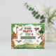 Personalize o nome e os detalhes da festa para criar um cartão postal de aniversário temático de dinossauros memorável para sua celebração.