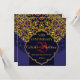 Convite de Aniversário de Casamento Luxuoso Inspirado no Estilo Indiano do Oriente Médio com Joias Azuis Vermelhas e Douradas. Personalize com nomes, data de aniversário e monograma ou números e outros detalhes da festa.