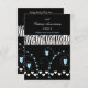 Um design sofisticado com fundo preto e padrão de pelo de zebra no centro. Corações azuis e brancos o acentuam. Personalize como desejar para o seu evento.