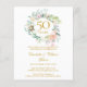 Com uma delicada grinalda de folhagens florais em aquarela, este convite de aniversário de casamento de 50 anos botânico chic pode ser personalizado com as informações do seu aniversário especial. O verso apresenta uma grinalda floral combinando que emoldura as datas do aniversário em texto dourado elegante em um fundo dourado. Projetado por Thisisnotme©