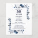 Este convite de aniversário de bodas de 50 anos azul-marinho elegante pode ser personalizado com suas informações em tipografia moderna. Criado por Thisisnotme©