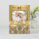 Convite de Aniversário de 50 anos. Damask dourado elegante & laço com joia. Personalize com seus próprios detalhes. POR FAVOR, NOTE que todas as imagens são planas! Elas NÃO têm Laços ou Joias reais!!