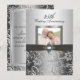 Convite de Aniversário. Elegante arco floral prateado e laço com joia. Exclusivo Zazzle. Personalize com seus próprios detalhes. POR FAVOR, NOTE que todas as imagens são planas! Elas NÃO têm Laços ou Joias reais!!