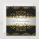 Convite de Aniversário de 50 Anos Dourado & Preto. Elegante redemoinho floral dourado & joias. POR FAVOR, NOTE que todas as imagens planas! Elas NÃO têm Diamantes ou Joias reais!!