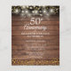 Com iluminação de corda e delicada confete de corações dourados em um fundo de madeira rústica. Personalize com as informações do seu aniversário de cinquenta anos em letras elegantes. Criado por Thisisnotme©