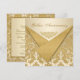 Este elegante e sofisticado convite de aniversário de 50 anos de casamento com padrão de brocado damasco bege e dourado e abas frontais douradas cintilantes com PRINTED ON tem um ornato dourado na frente e um lustre de sala de baile em branco cremoso no verso. Faria uma declaração sofisticada para o casal que celebra 50 anos de casamento. Sugiro papel com brilho pérola ou papel semibrilho básico. Se necessitar de algum item correspondente, por favor envie um email para niteowlstudio@gmail.com.