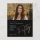 Convite de aniversário de 50 anos minimalista moderno apresenta número de folha de ouro falso estiloso com letra manuscrita Fifty e os detalhes da sua festa em fonte serif clássica em fundo preto, simples e elegante, ótimo convite de aniversário de ocasião especial para homens e mulheres. a cor do fundo preto pode ser alterada para qualquer cor de sua escolha.