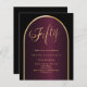 Um elegante convite de 50 anos. Um fundo preto e arrojado com um arco de ouro na frente. 1 folha = 1 convite impresso de borda a borda.