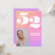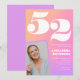 Convites de aniversário de 52 anos rosa para ela gradiente de foto retrô