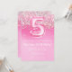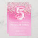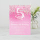 Convite de aniversário de 5 anos rosa menina brilho rosa para festa de aniversário de uma menina de 5 anos com escrita de roteiro moderno e balões de folha divertidos.
