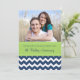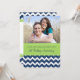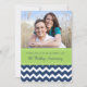 Cartão de convite de aniversário de casamento de cinco anos personalizado com foto em padrão de ziguezagues chevron azul-marinho escuro divertido e moderno, verde lima brilhante e branco, elegante e contemporâneo. Personalizável com os detalhes da sua festa e sua própria foto.