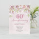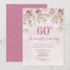 Lindo convite tradicional de aniversário de 60 anos de casamento com belas rosas e magnólias cor-de-rosa e um fundo simples e padronizado.