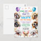 Convites de Aniversário Tema Cachorro. 6 anos de idade (ou mude para qualquer idade). Para menino ou menina. Convite de ilustração de cachorrinho feliz e sorridente, projetado com confetes e balões, cercado por raças populares de cães pequenos, como shih tzu, pug, maltese, chihuahua, poodle e beagle. Todo o texto é editável com o nome da criança, idade, horário da festa, endereço e RSVP.